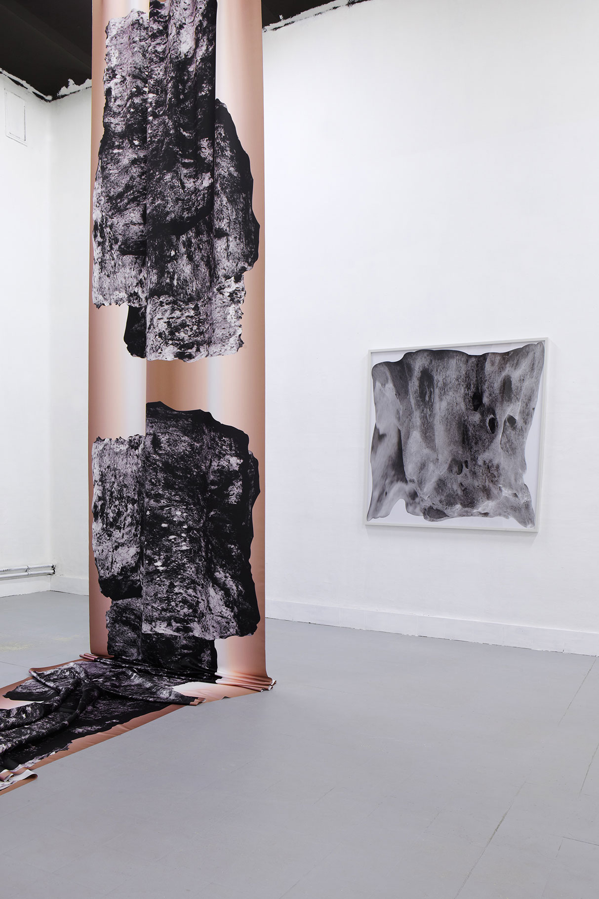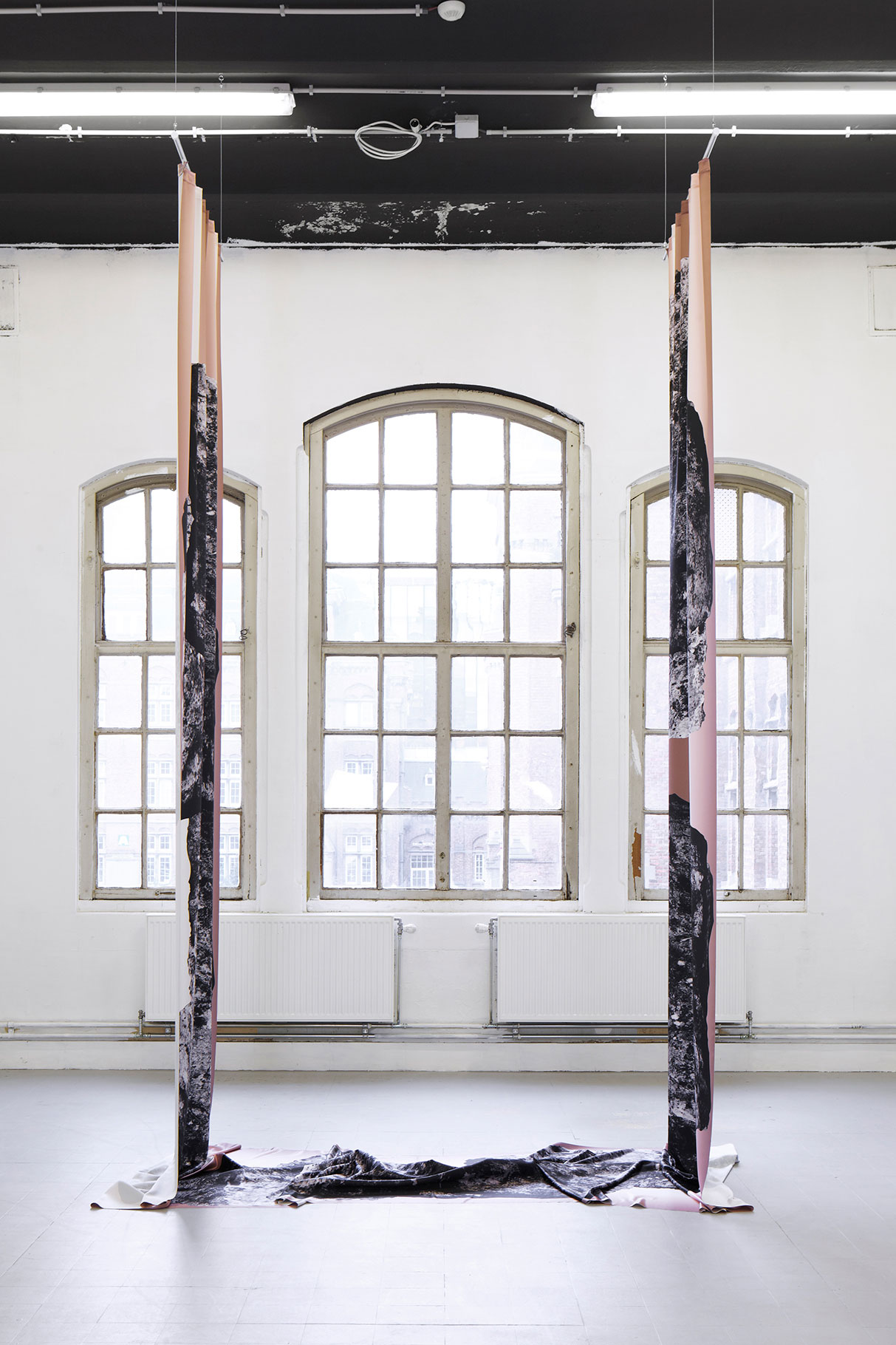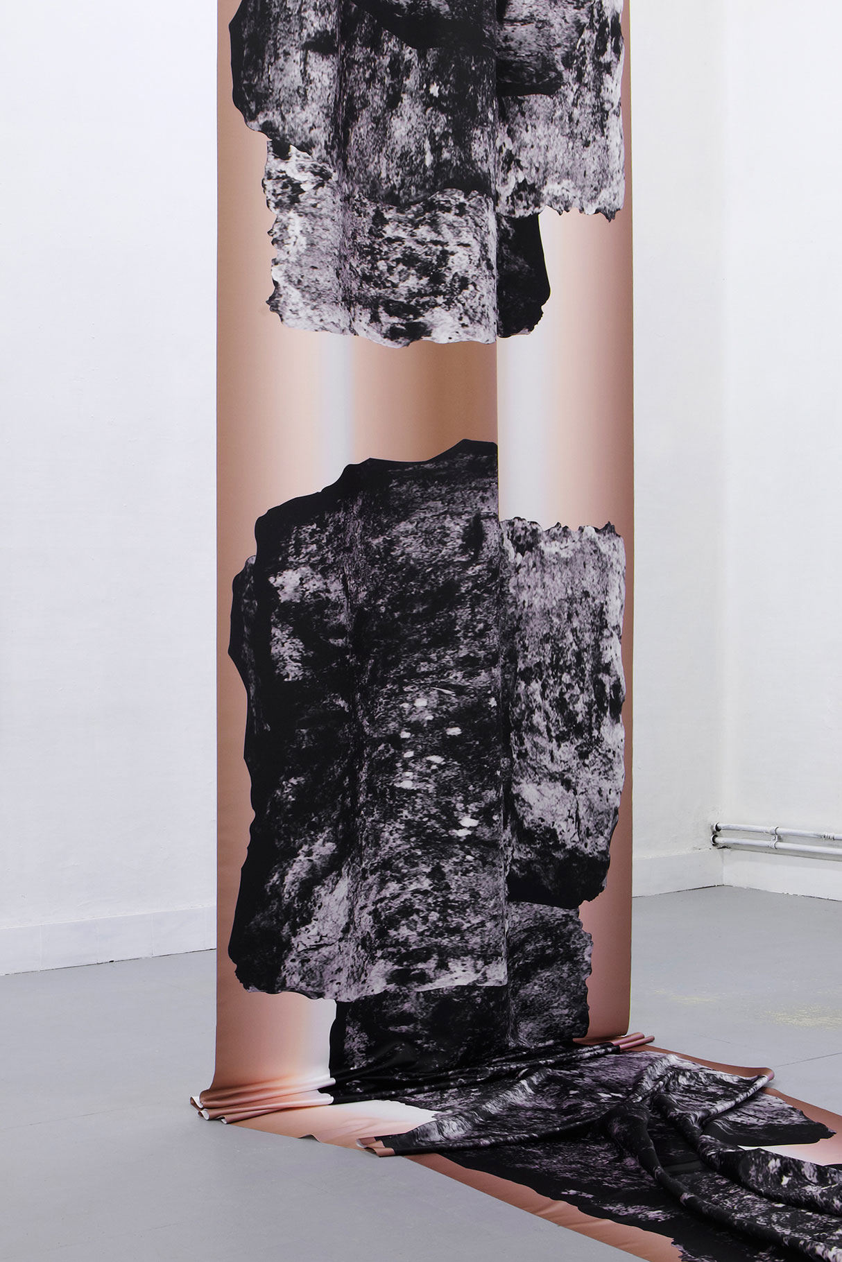 Digital print on satin, curtain rail, 400 x 250 x 150 cm